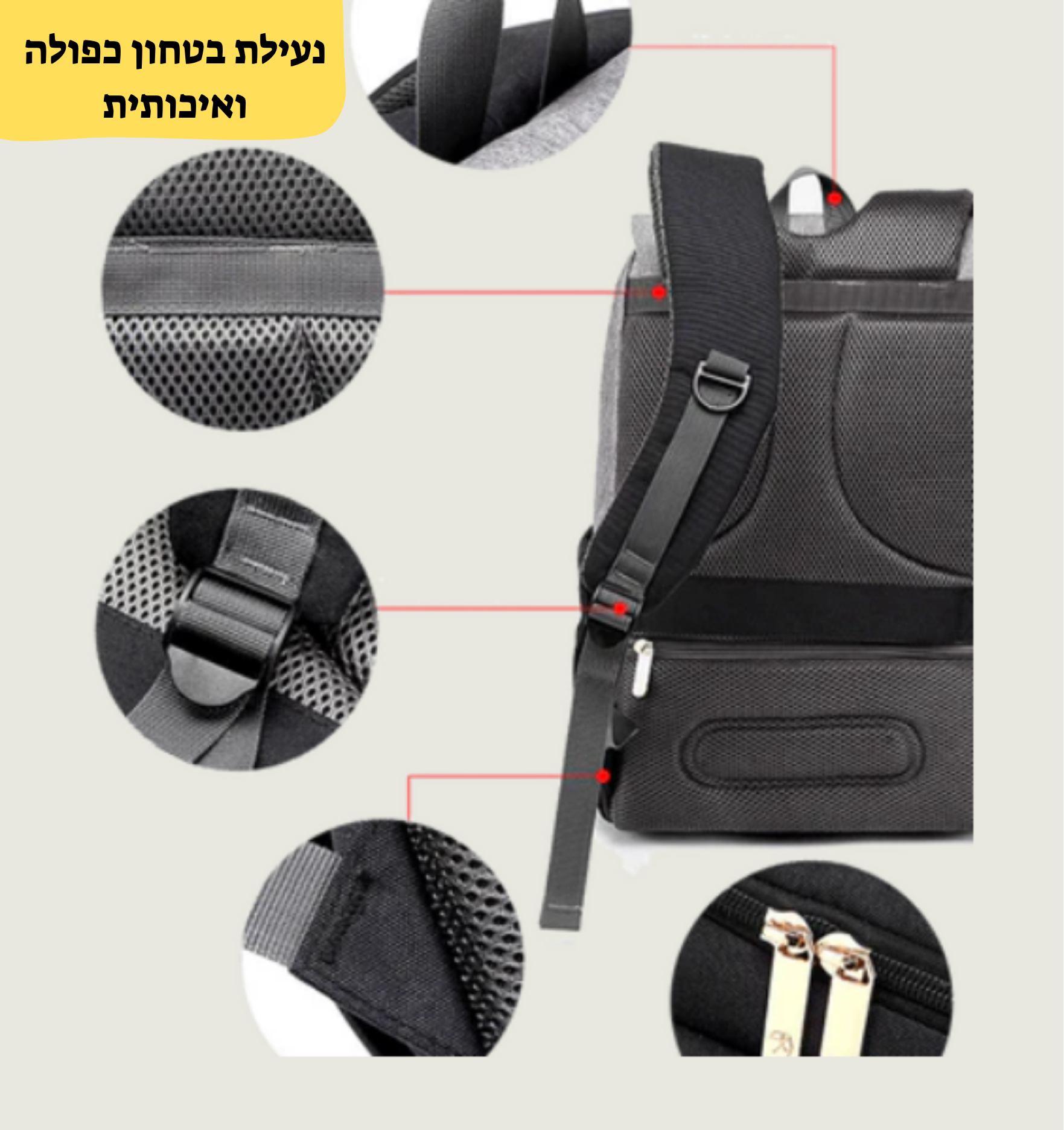 הרצועות האורטופדיות שלו מקלות משמעותית על כאבי הגב והכתפיים, כדי שתוכלי לסחוב פחות ולהרגיש הרבה יותר טוב גם ביום הכי עמוס.